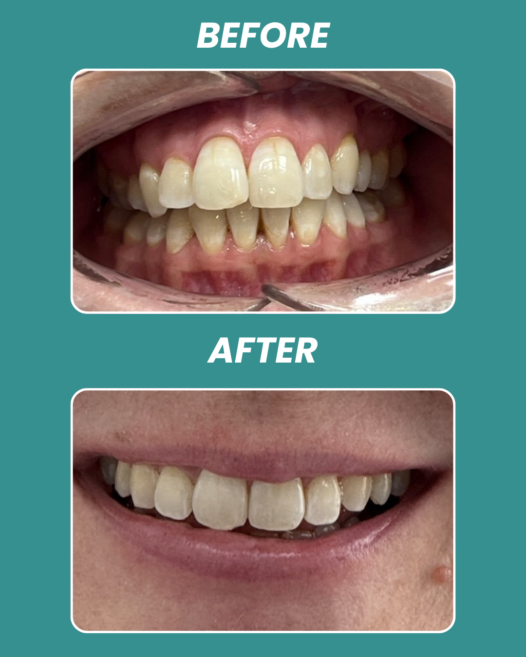 - Easy to care for – Remove them for meals, brushing and flossing, then pop them back in when you’re done.